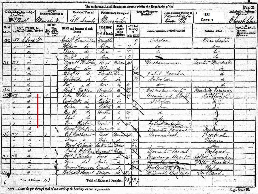 John Wilson at 155 Lloyd Street, Chorlton, Manchester in 1881, that we find