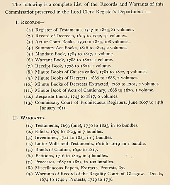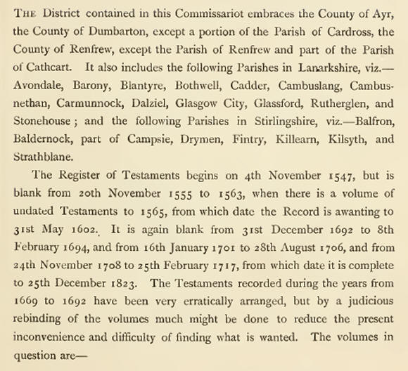 The Commissariot Record of Glasgow/Register of Testaments. 1547 - 1800.