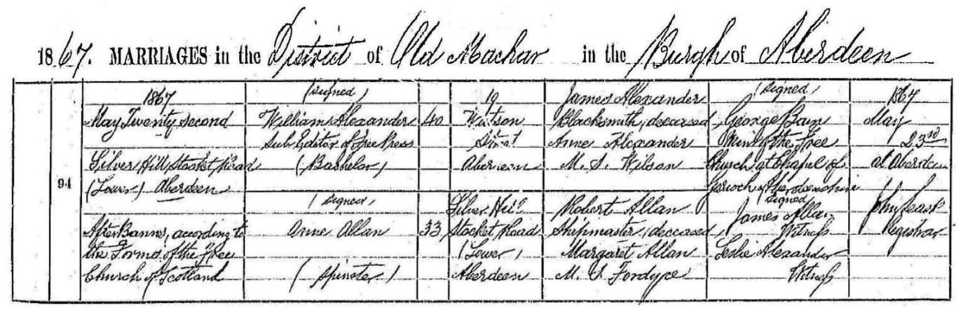 of the Aberdeen Free Press, married Anne Allan of Aberdeen (aged 33)