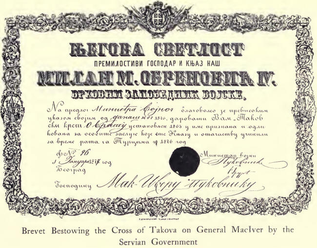 Servian Armies on the Morava and Timok, and has received the Cross of