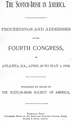 Congress of the Scotch-Irish Society of America was held in Atlanta the