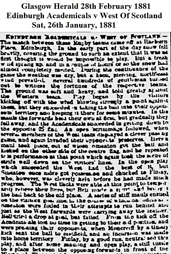 1881, Jan 26 Edinburgh Academicals v West of Scotland