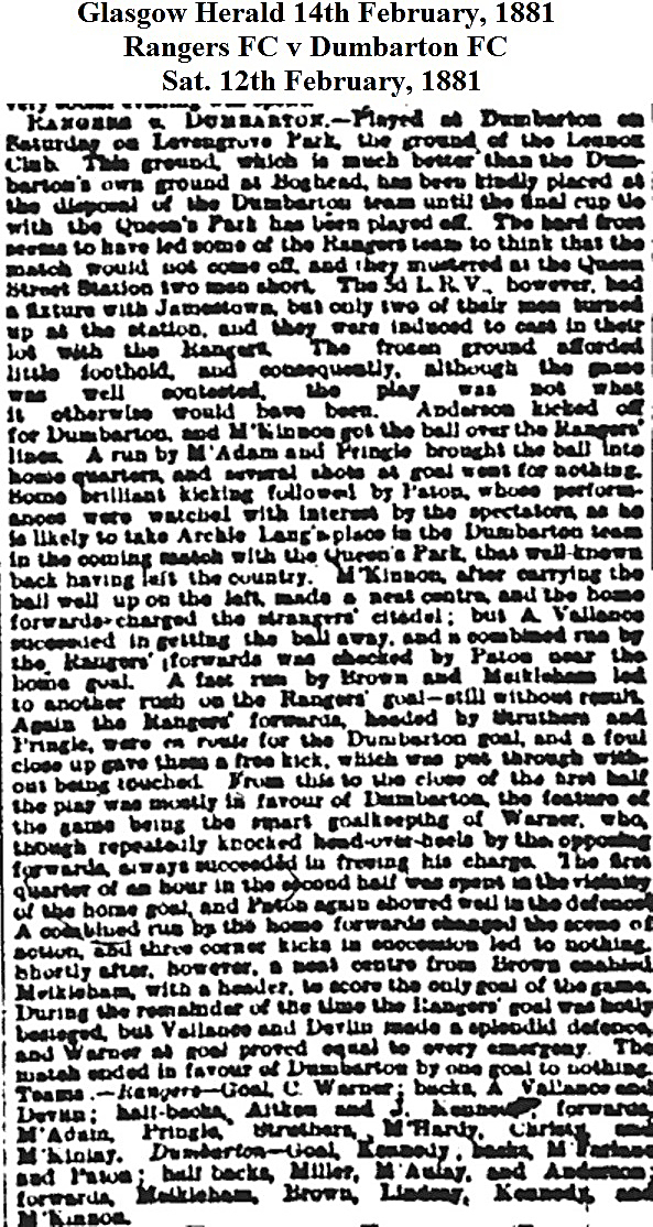 1881, Feb 12 Rangers FC v Dumbarton FC