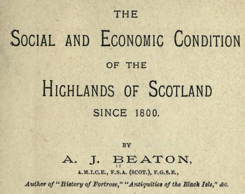 The Social and Economic Condition of the Highlands of Scotland Since 1800