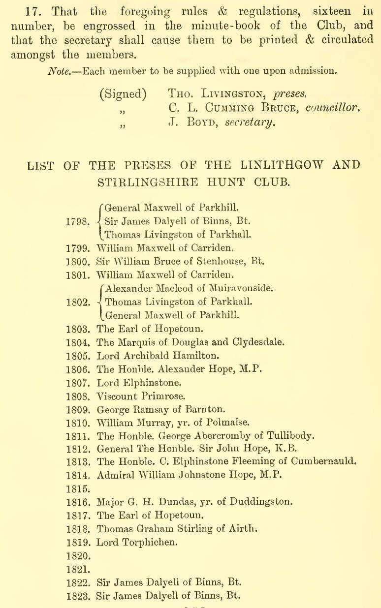 The History of the Linlithgow and Stirlingshire Hunt 1775-1910