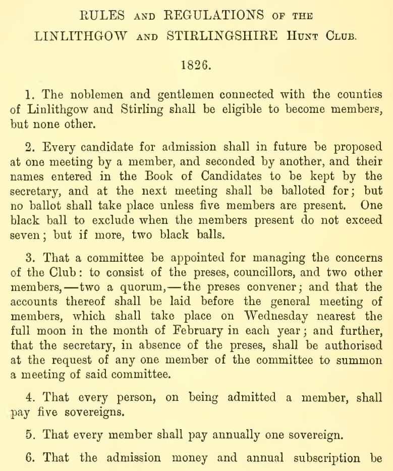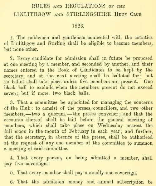 Appendix II - Rules and Regulations of the Hunt Club, 1826