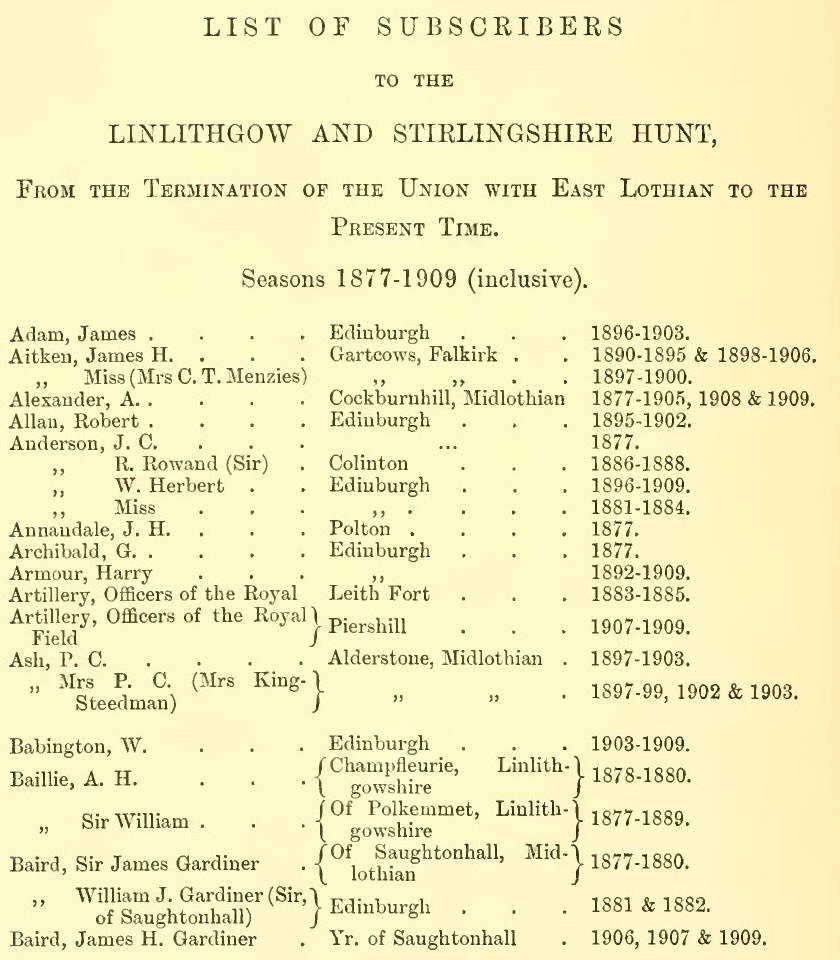 The History of the Linlithgow and Stirlingshire Hunt 1775-1910
