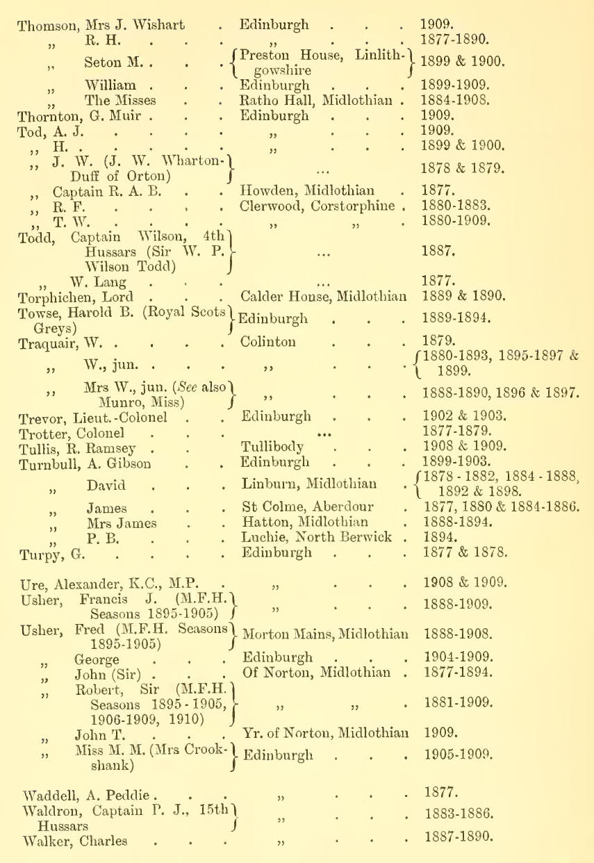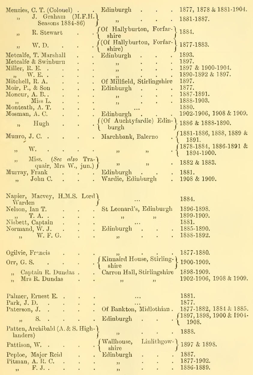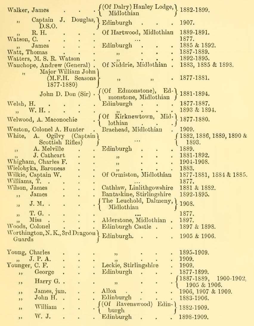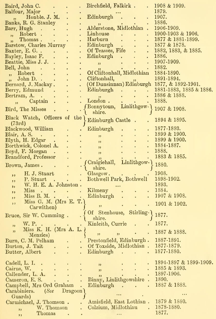 Appendix V - List of Subscribers, 1877-1909 (Inclusive)