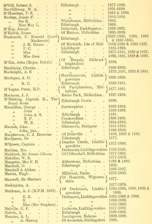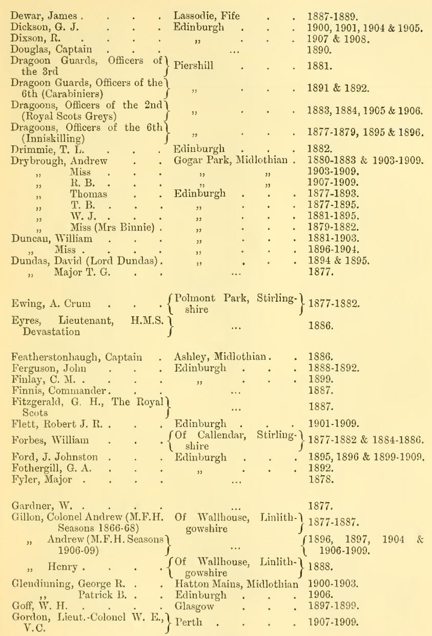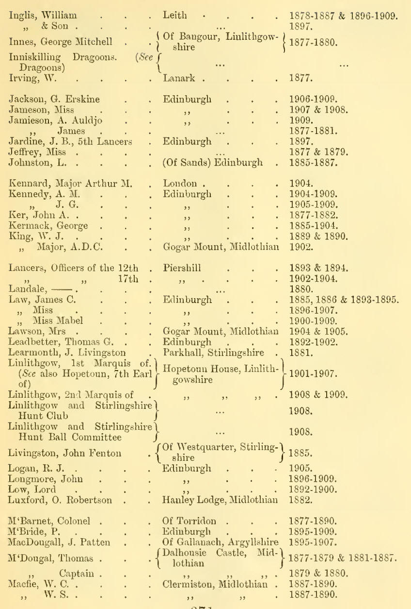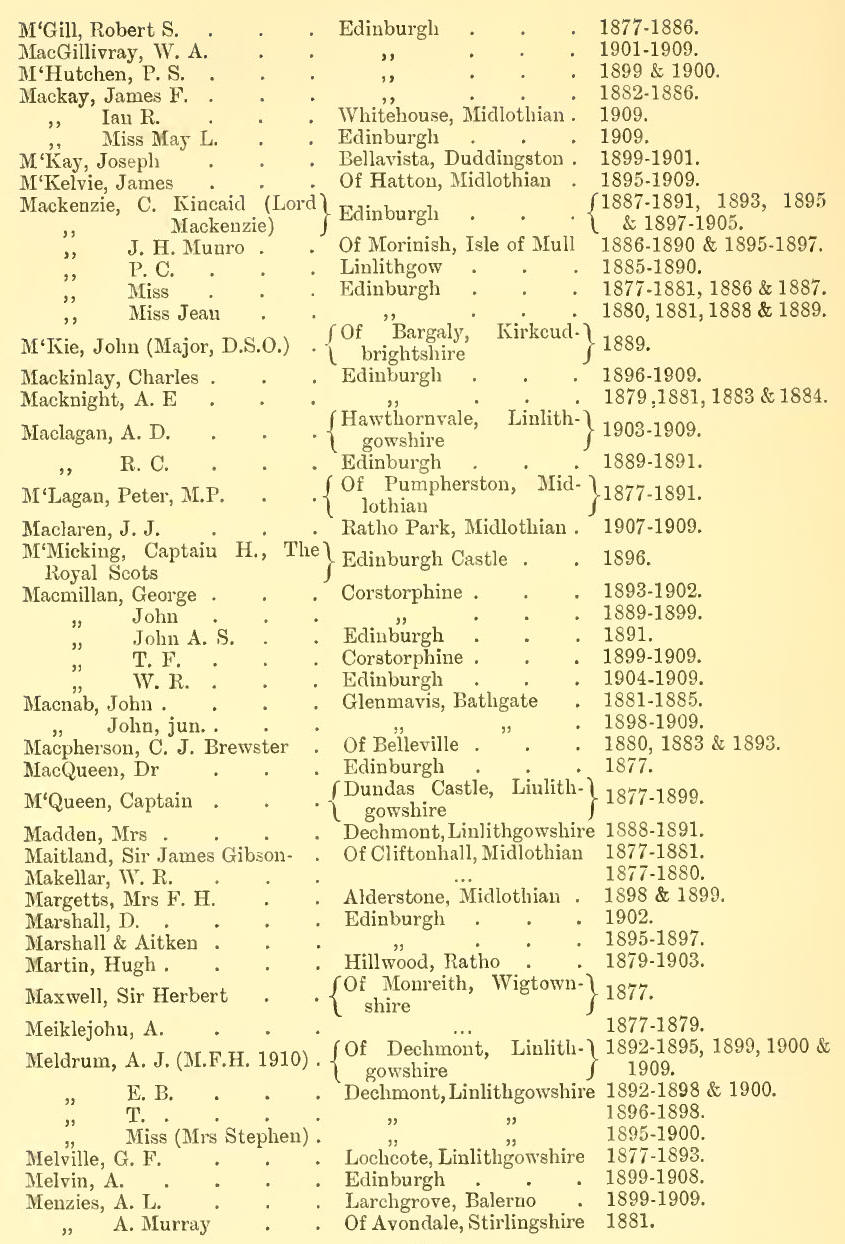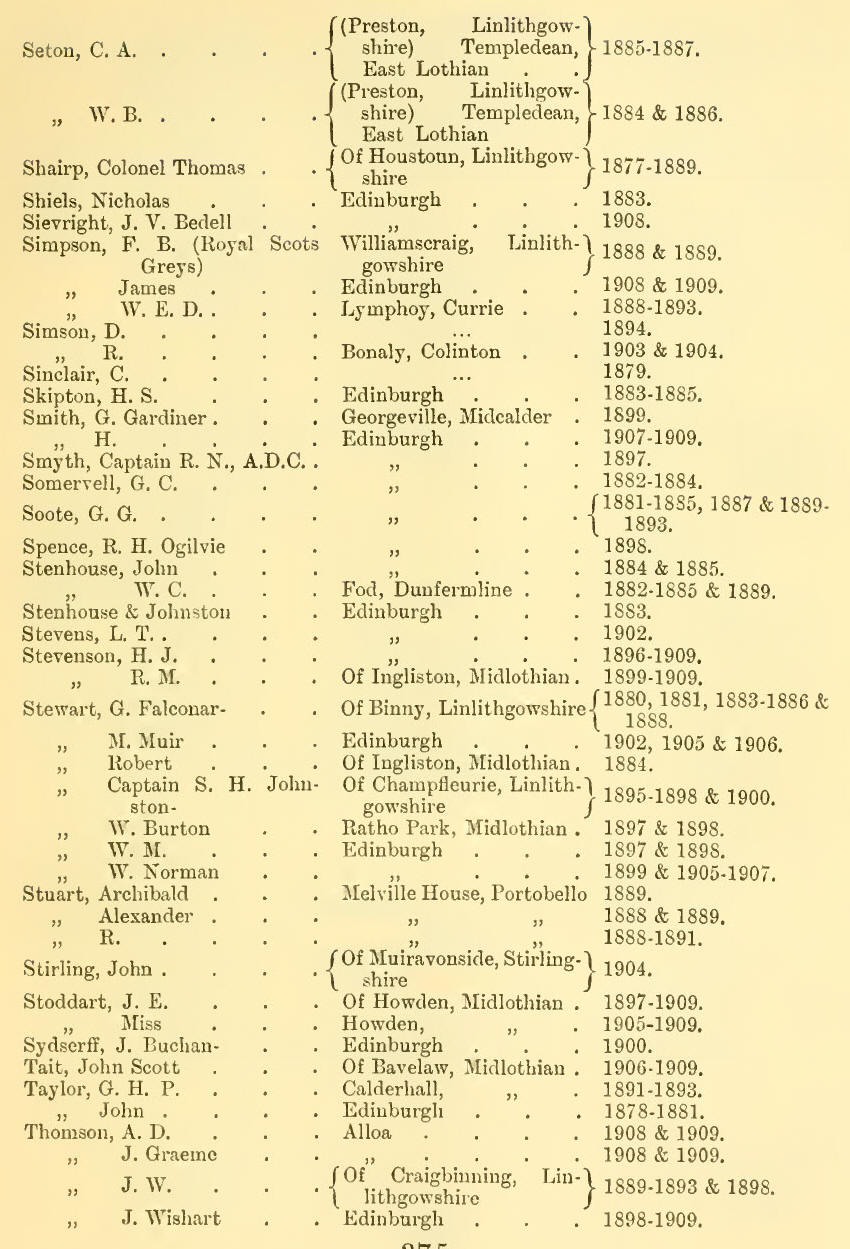 Appendix V - List of Subscribers, 1877-1909 (Inclusive)