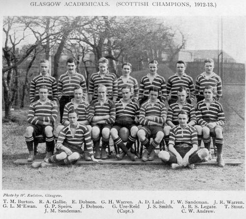 Watsonians and Glasgow Academicals. The Glasgow team lost to the Watsonians