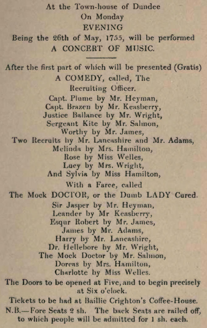 Dundee had a company of players visiting them in 1734.