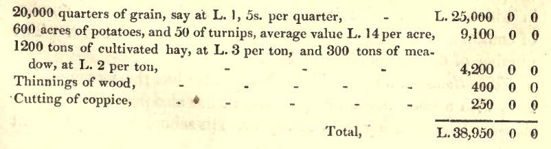 Produce.—The gross amount of raw produce (exclusive of the pasture lands) raised in the parish, as nearly as can be ascertained, is as follows: