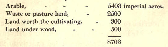 Rent of Land.—Average rent of land per acre is L. 1, 5s.; average cost of grazing an ox or cow per year, L. 3; grazing a quey, L. 1, 10s. ; grazing a sheep, 14s.