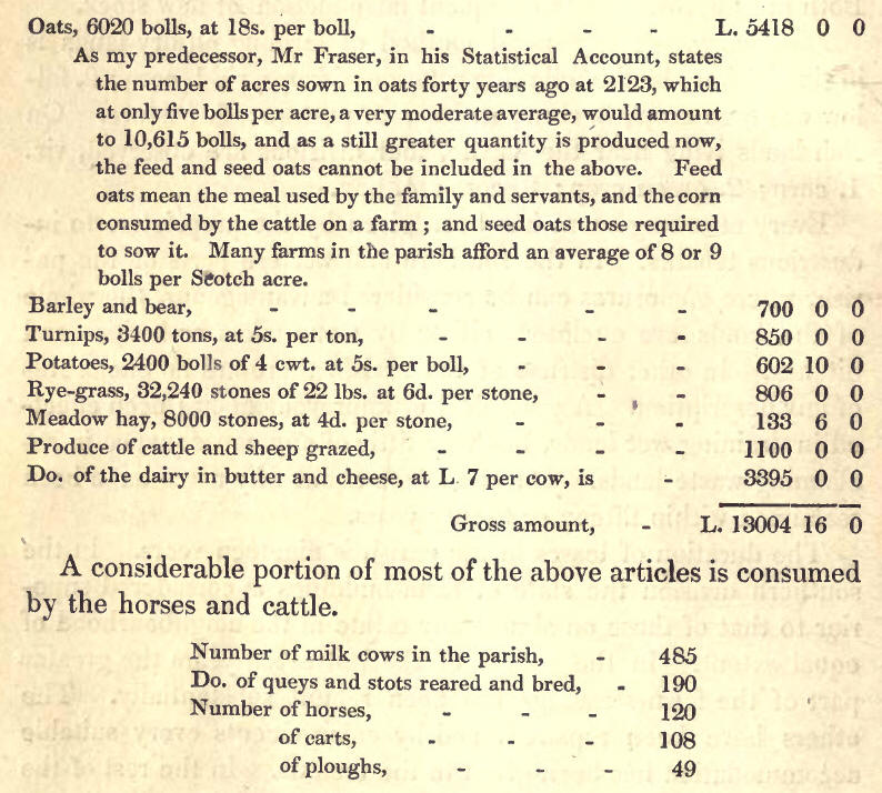 Produce.—The average gross amount of raw produce raised in the parish, as nearly as that can be ascertained, is as follows: