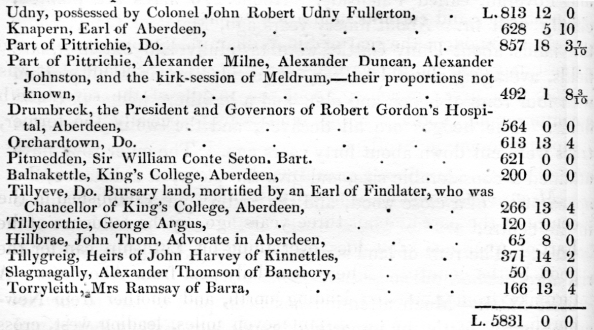 The lands taken from Ellon and Logie Buchan still pay small sums out of