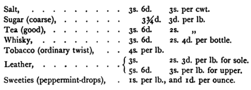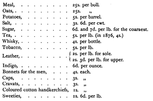 tea, sugar, salt, clothing, etc., for the use of the inhabitants, in