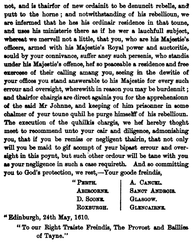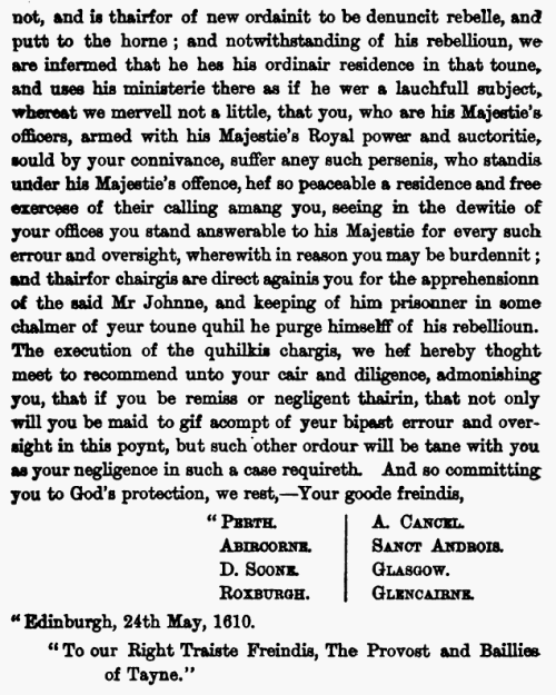 the people of Tain, "for their zeal in the cause of the Reformation," and