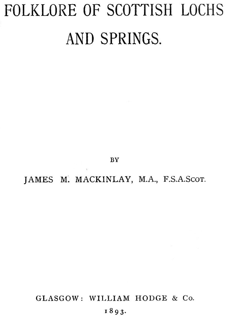 No work giving a comprehensive account of Well-worship in Scotland has yet appeared. Mr. R. C. Hope's recent volume, "Holy Wells: Their Legends and Traditions," discusses the subject in its relation to England. In the following pages an attempt has been made to illustrate the more outstanding facts associated with the cult north of the Tweed. Various holy wells are referred to by name; but the list makes no claim to be exhaustive.