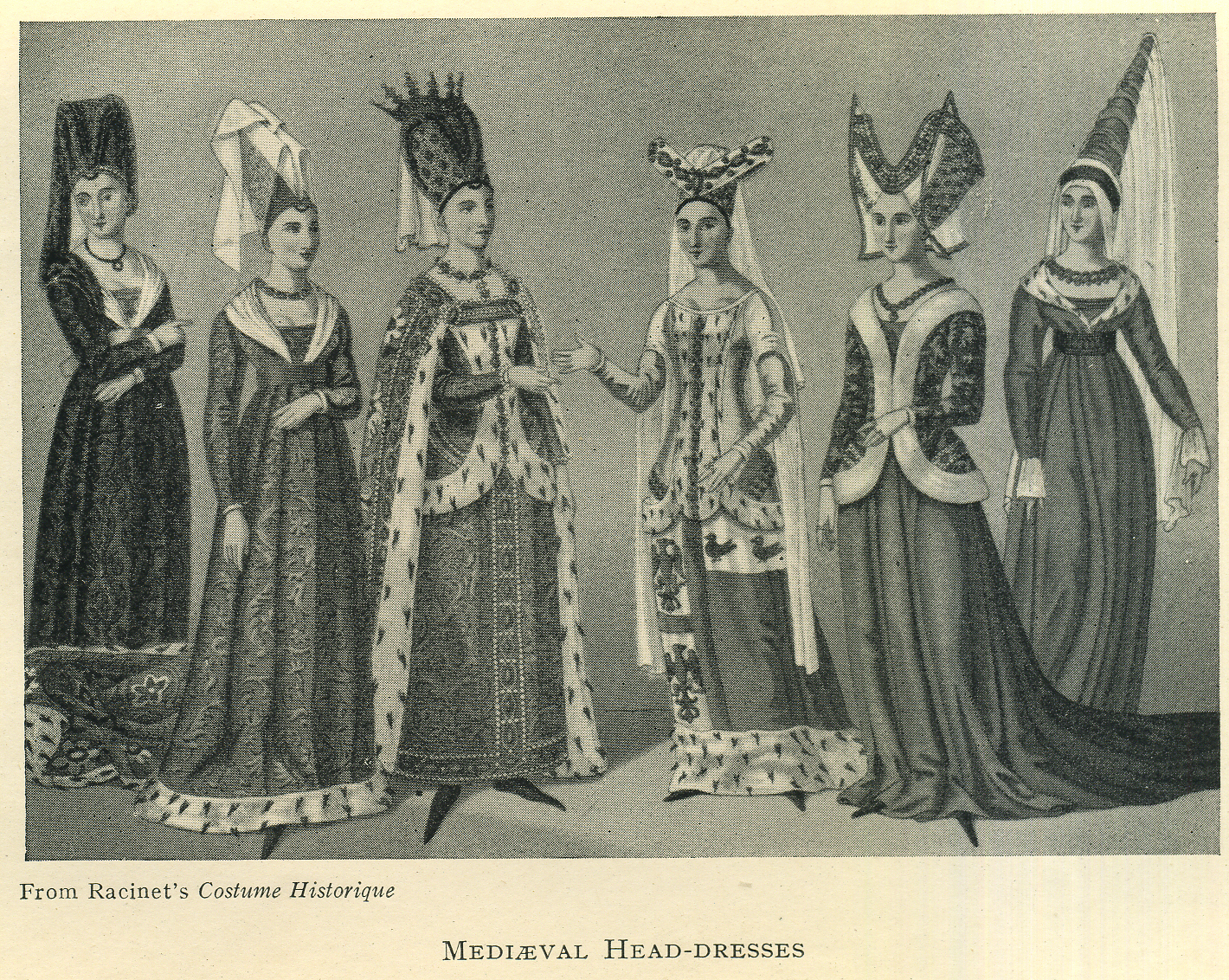 and jewels. Ladies in the fifteenth century, as now, had shingled hair,