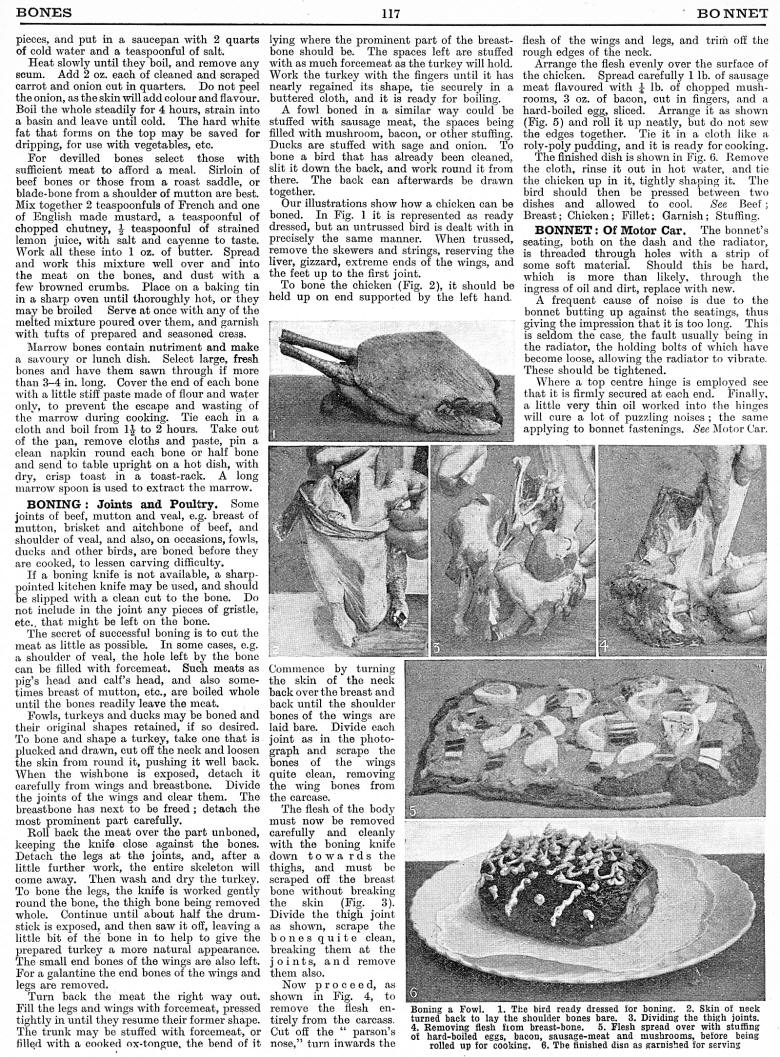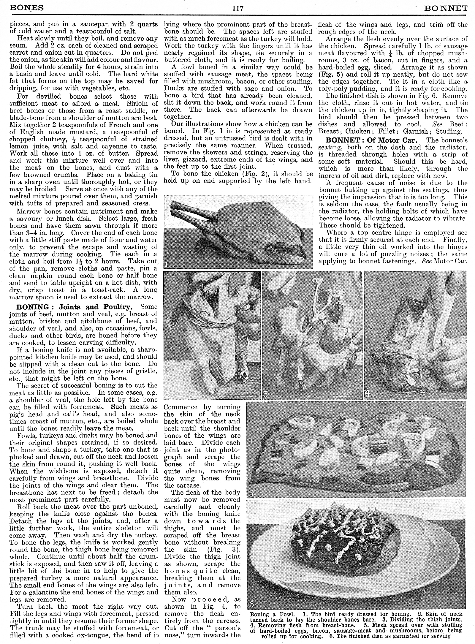 Bones, Boning: Joints and Poultry, Bonnet: Of Motor Car