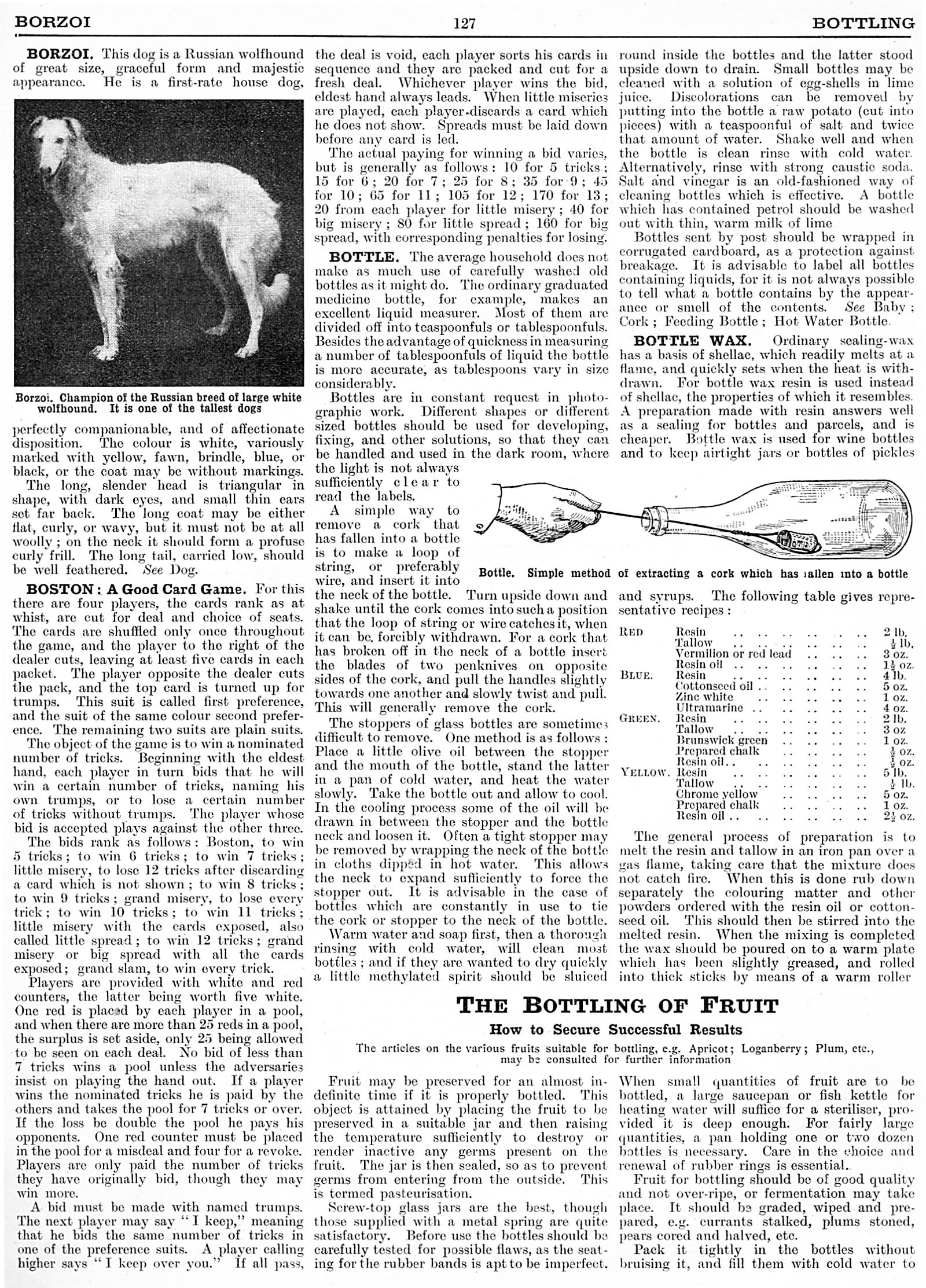 Borzoi, Boston: A Good Card Game, Bottle, The Bottling of Fruit, Bottle Wax, Bottling