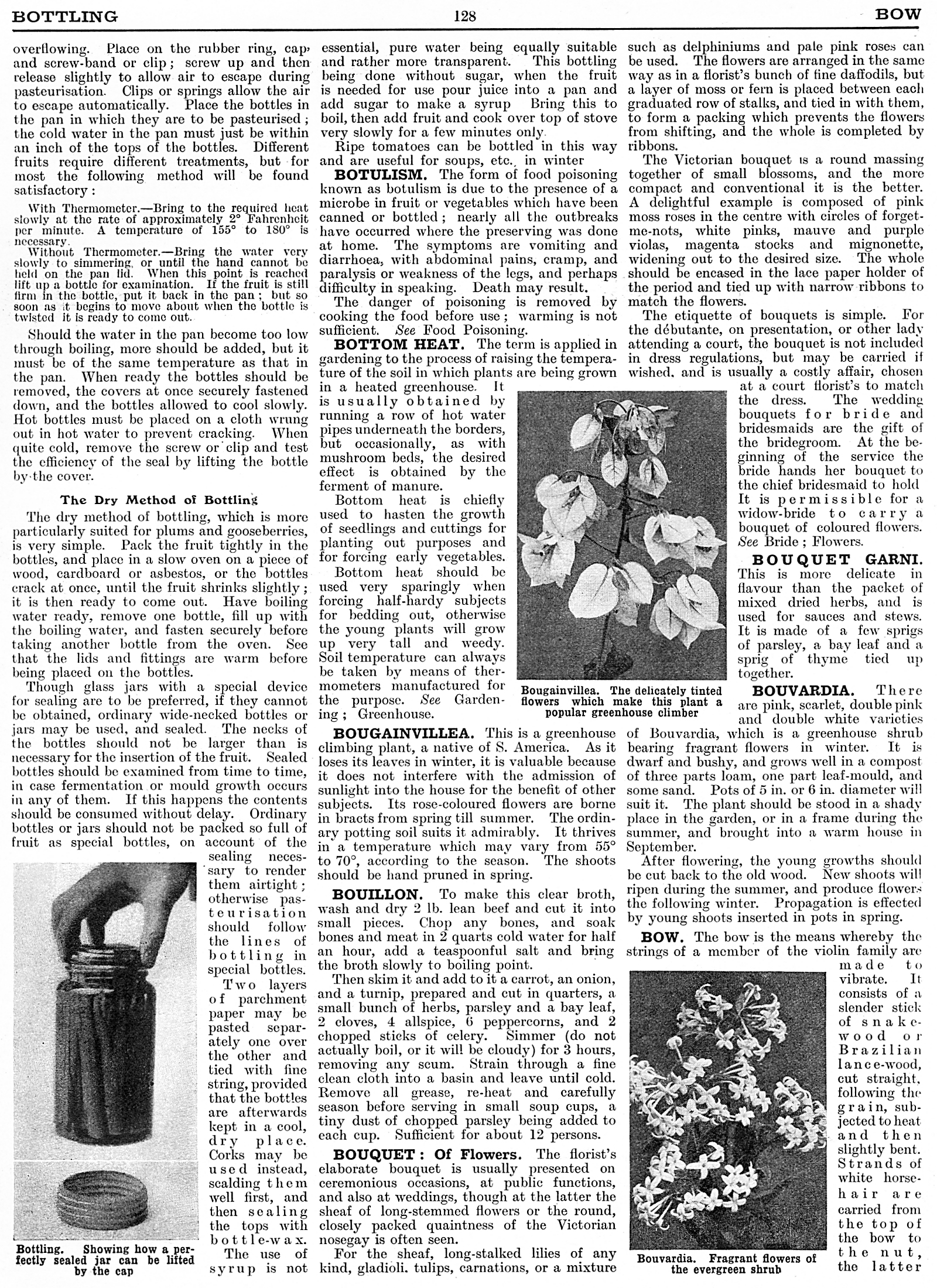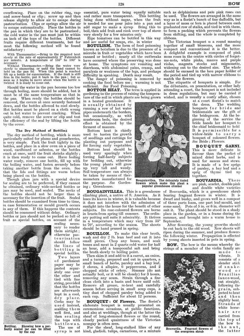Bottling, Botulism, Bottom Heat, Bougainvillea, Bouillon, Bouquet: Of Flowers, Bouquet Garni, Bouvardia, Bow