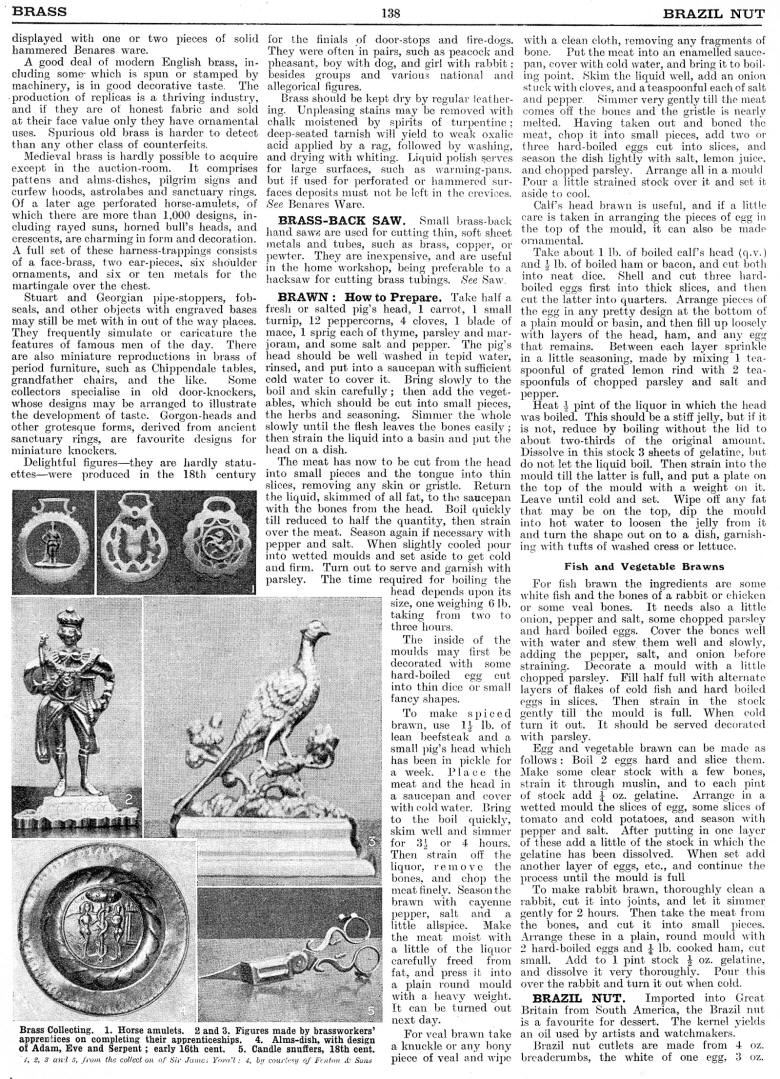 Brass, Brass-Back Saw, Brawn: How to Prepare, Fish and Vegetable Brawns, Brazil Nut