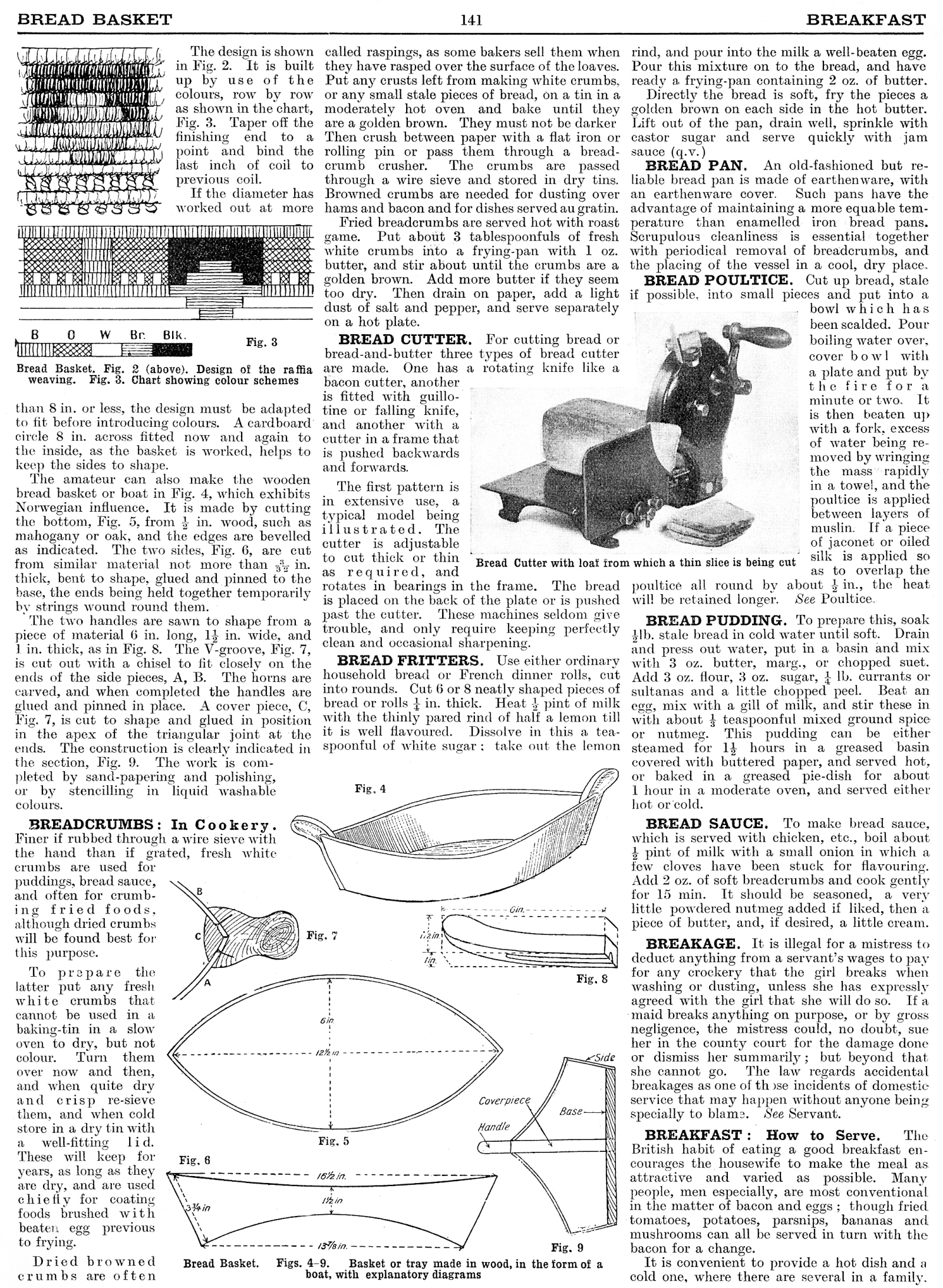 Bread Basket, Breadcrumbs, Bread Cutter, Bread Fritters, Bread Pan, Bread Poultice, Bread Pudding, Bread Sauce, Breakage, Breakfast