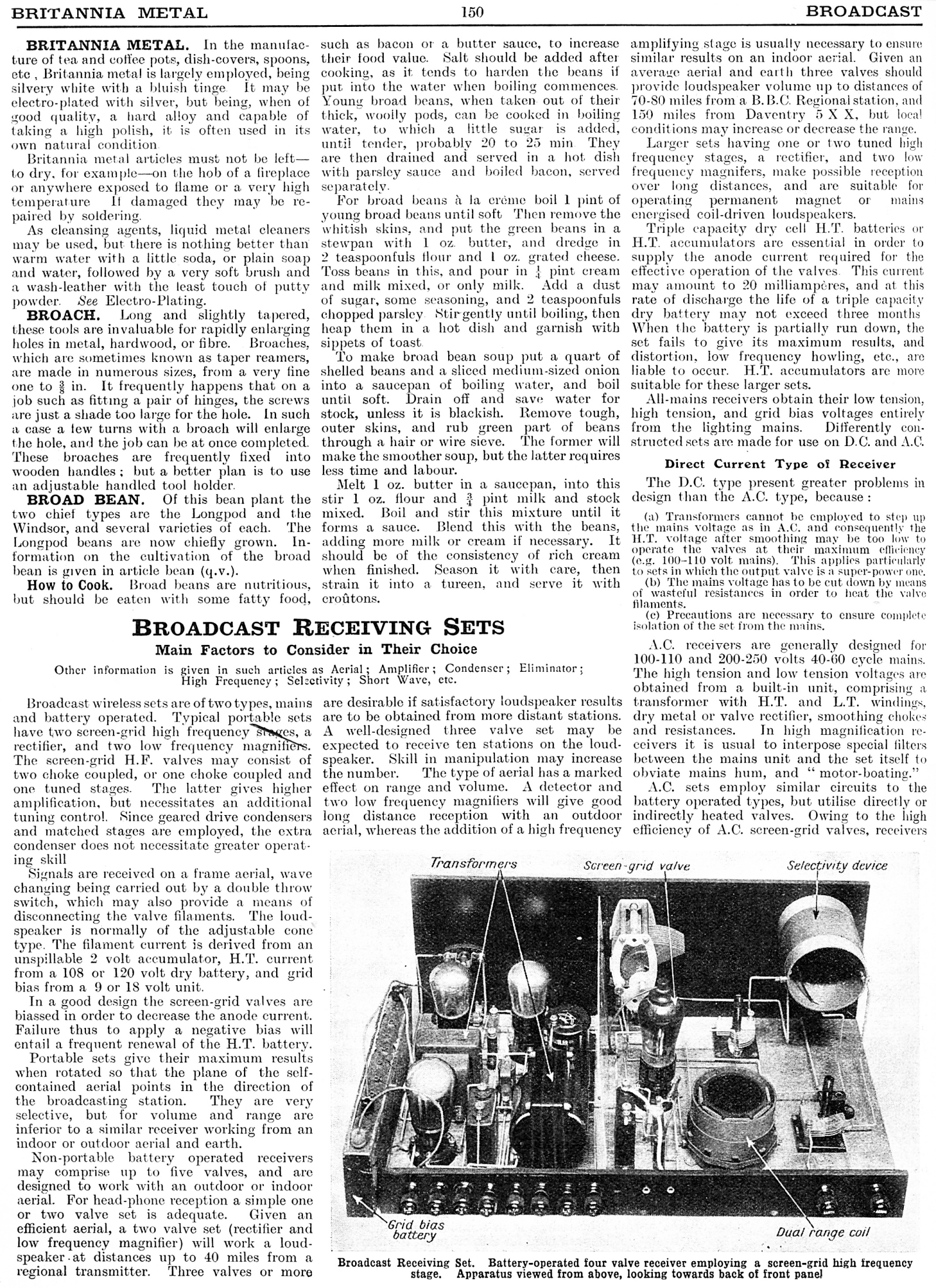 Britannia Metal, Broach, Broad Bean, Broadcast Receiving Sets