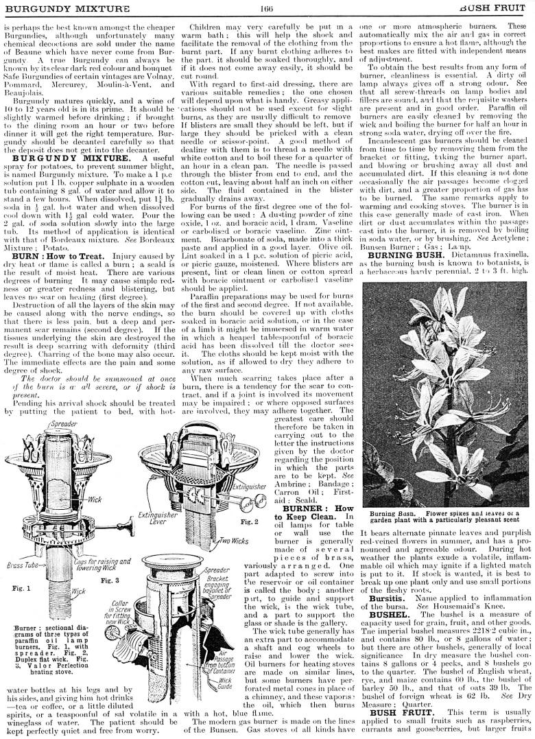 Burgundy Mixture, Burn: How to Treat, Burner, Burning Bush, Bursitus, Bushel, Bush Fruit