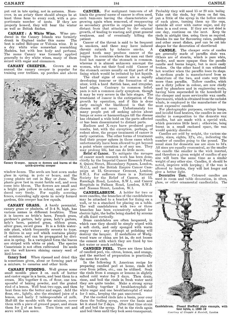 Canary, Canary Creeper, Canary Grass, Canary Pudding, Cancer, Candelabrum, Candied Peel, Candle