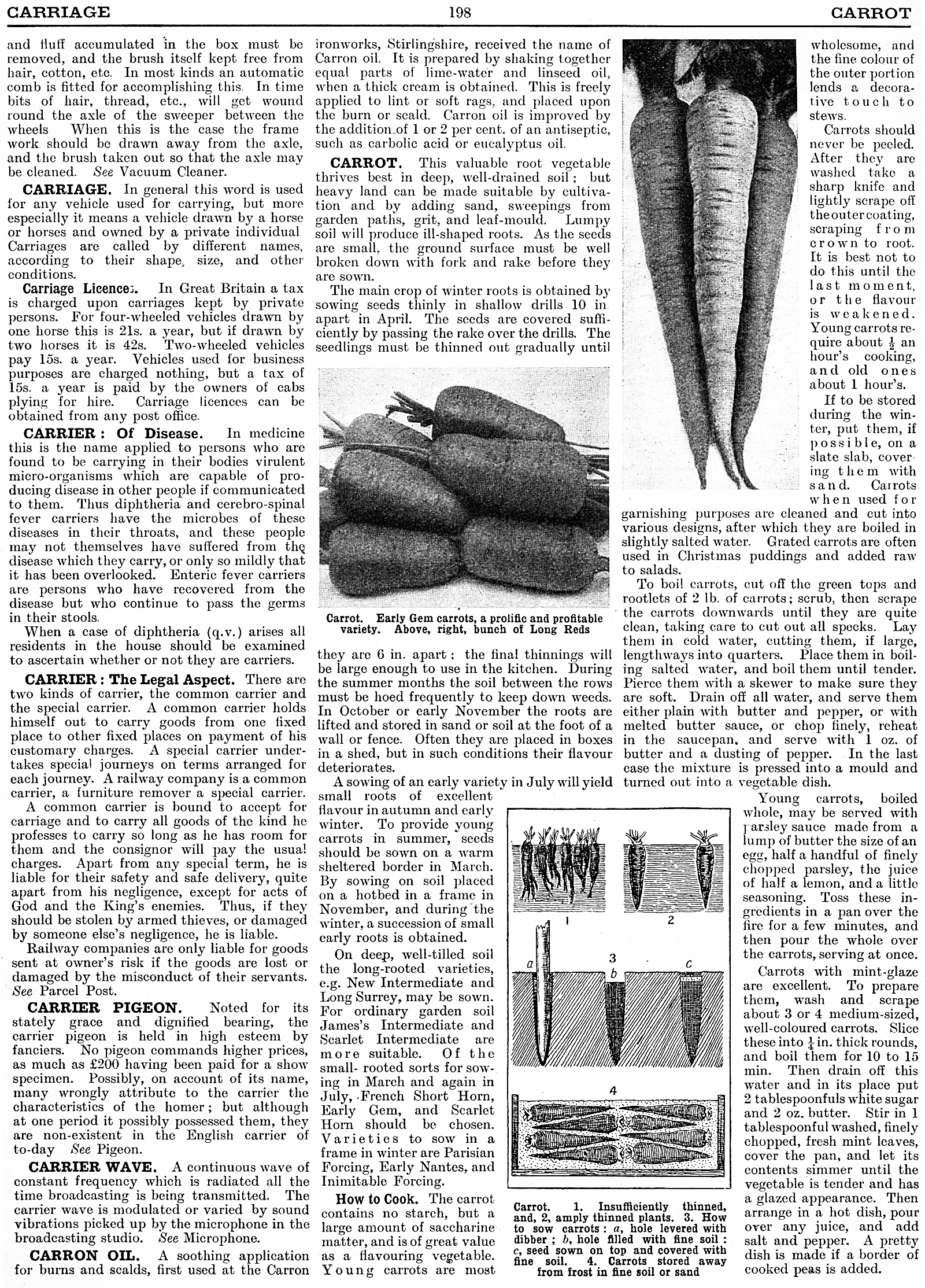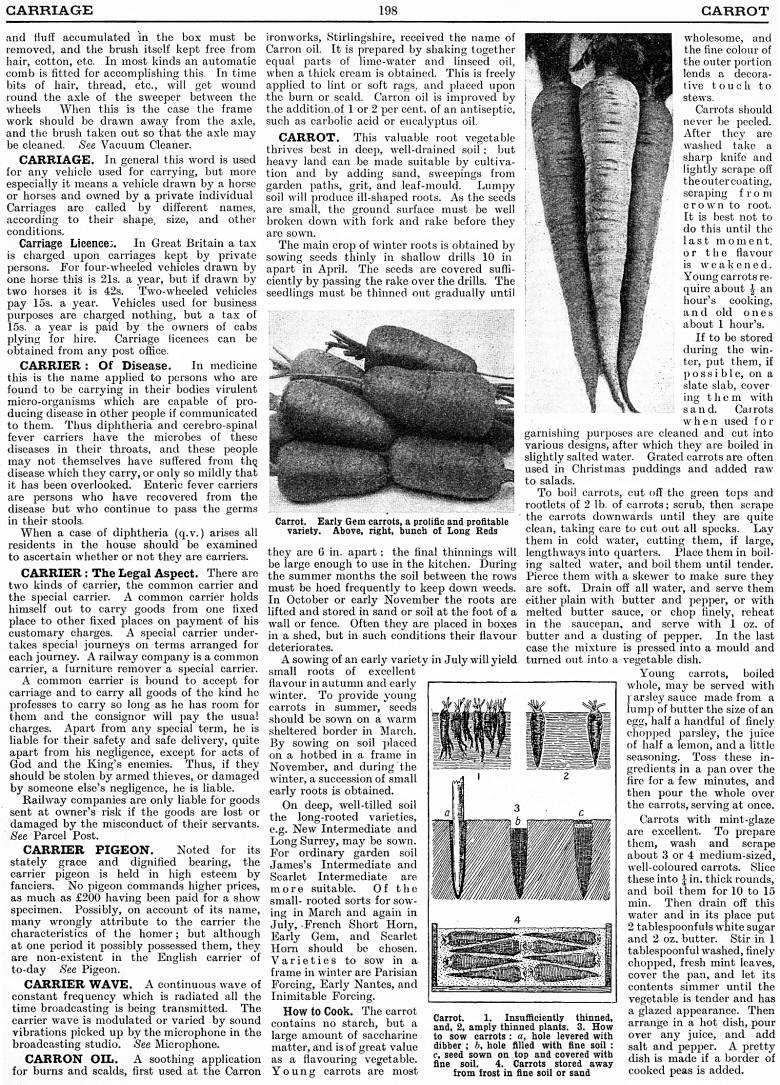 Carriage, Carrier: of disease, Carrier: The Legal Aspect, Carrier Pigeon, Carrier Wave, Carron Oil, Carrot