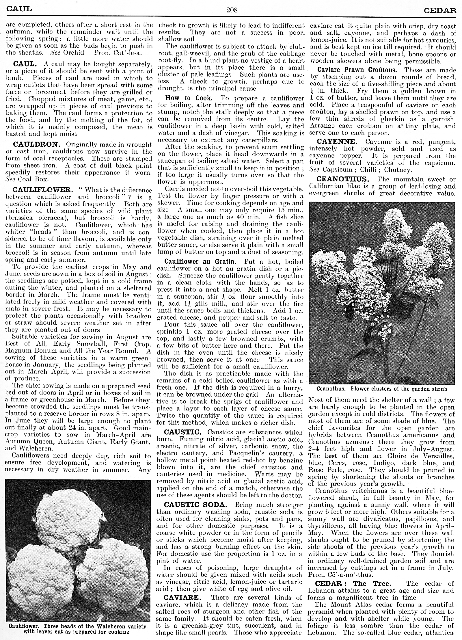 Caul, Cauldron, Cauliflower, Caustic, Caustic Soda, Caviare, Cayenne, Ceanothus, Cedar