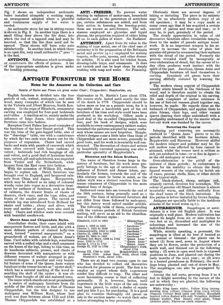 Antidote, Anti-Freezer, Antimony, Antique Furniture in the Home, Antirrhinum