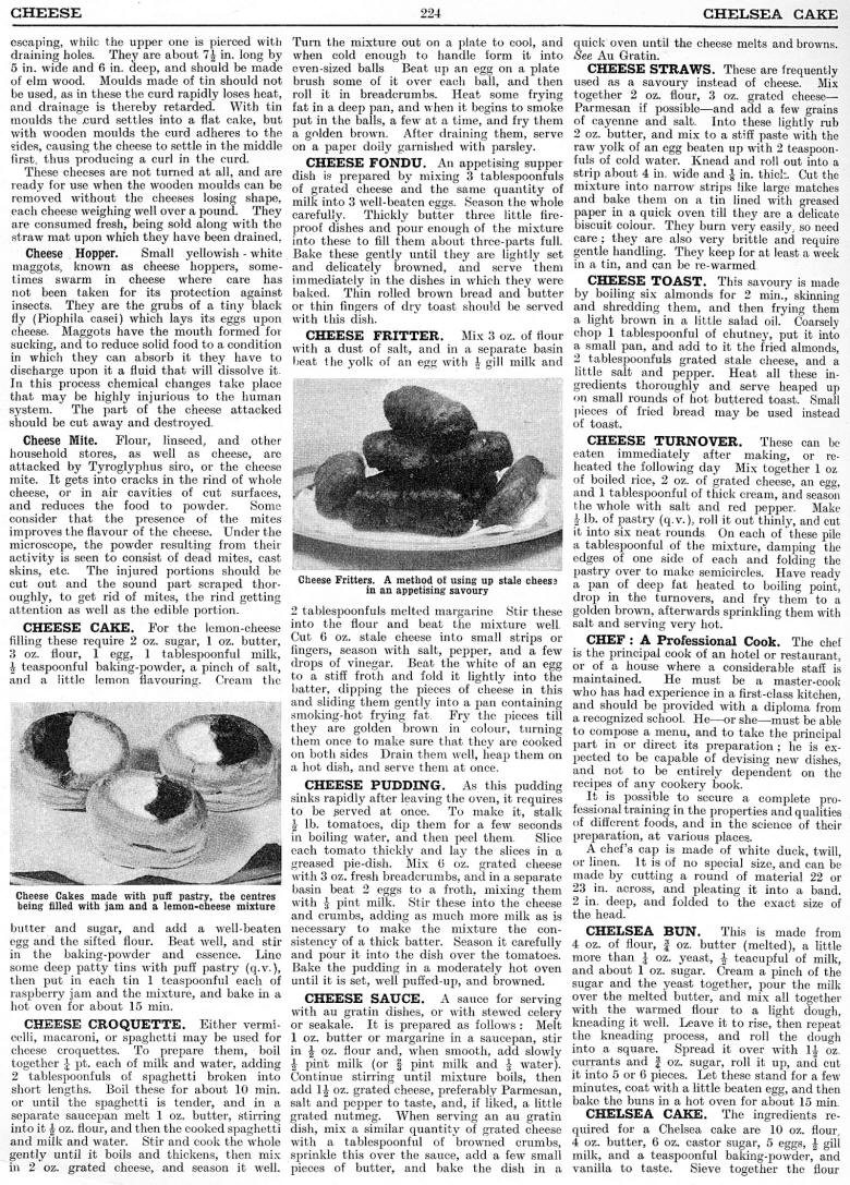 Cheese, Cheese Hopper, Cheese Mite, Cheese Cake, Cheese Croquette, Cheese Fondu, Cheese Fritter, Cheese Pudding, Cheese Sauce, Cheese Straws, Cheese Toast, Cheese Turnover, Chef, Chelsea Bun, Chelsea Cake
