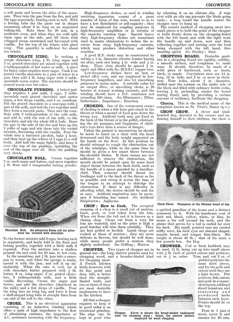 Chocolate Icing, Chocolate Pudding, Chocolate Roll, Choke, Choking, Chop, Chopper, Chopping Board, Chow Chow, Chowder