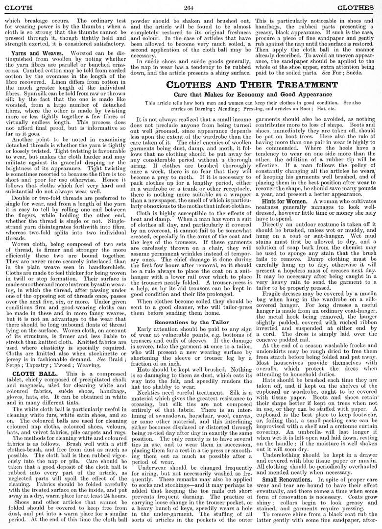 Cloth, Yarns and Weaves, Cloth Ball, Clothes and their Treatment