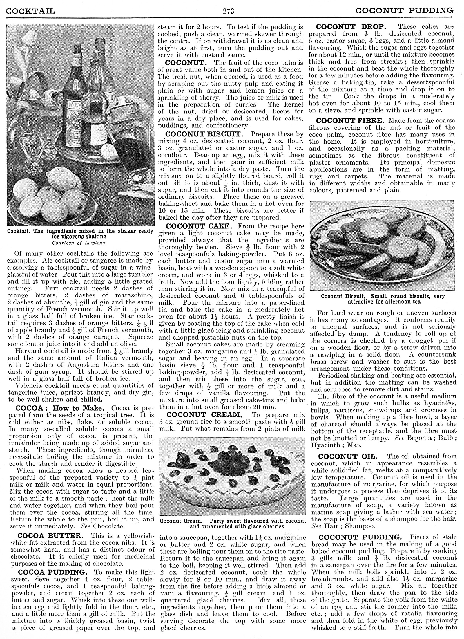 Cocktail, Cocoa, Cocoa Butter, Cocoa Pudding, Coconut, Coconut Biscuit, Coconut Cake, Coconut Cream, Coconut Drop, Coconut Fibre, Coconut Oil, Coconut Pudding