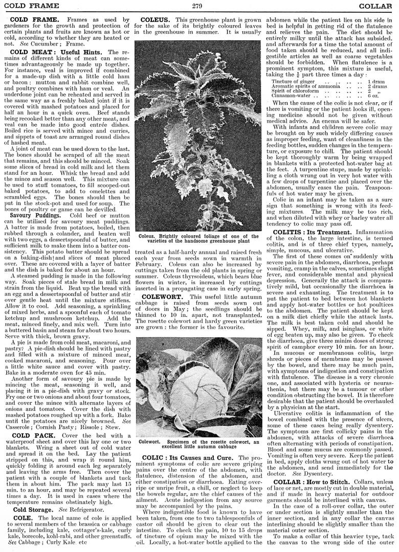 Cold Frame, Cold Meat, Cold Pack, Cold Storage, Cole, Coleus, Colewort, Colic, Colitis, Collar