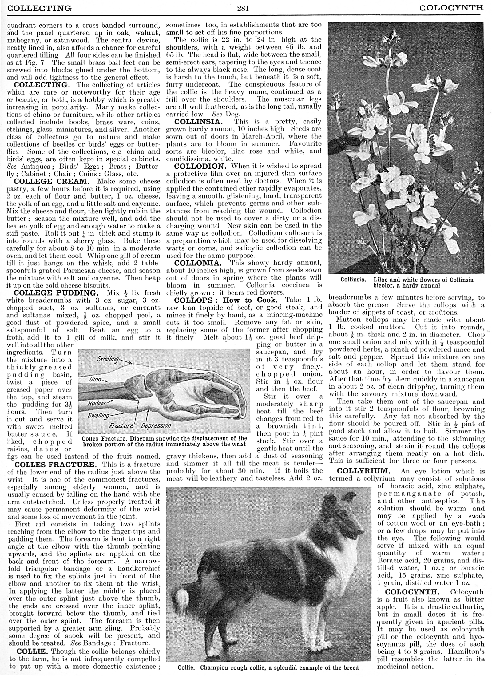Collecting, College Cream, College Pudding, Colles Fracture, Collie, Collinsia, Collodion, Collomia, Collops, Collyrium, Colocynth