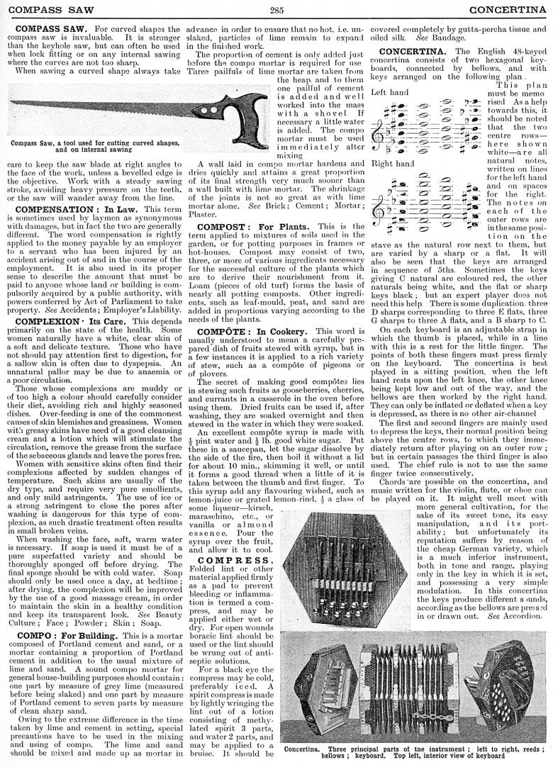 Compass Saw, Compensation, Complexion, Compo, Compost, Compote, Compress, Concertina