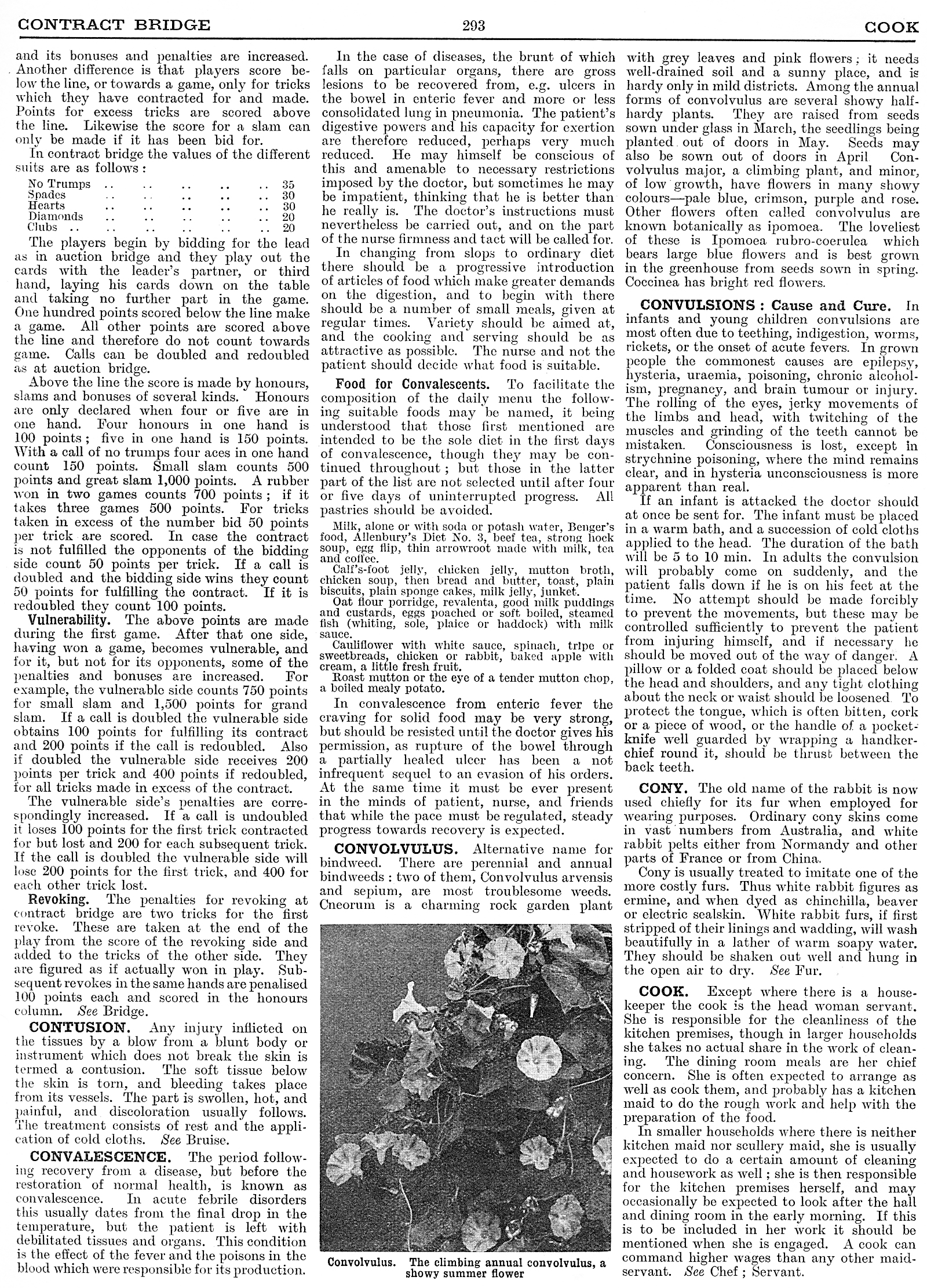 Contract Bridge, Contusion, Convalescence, Convolvulus, Convulsions, Cony, Cook