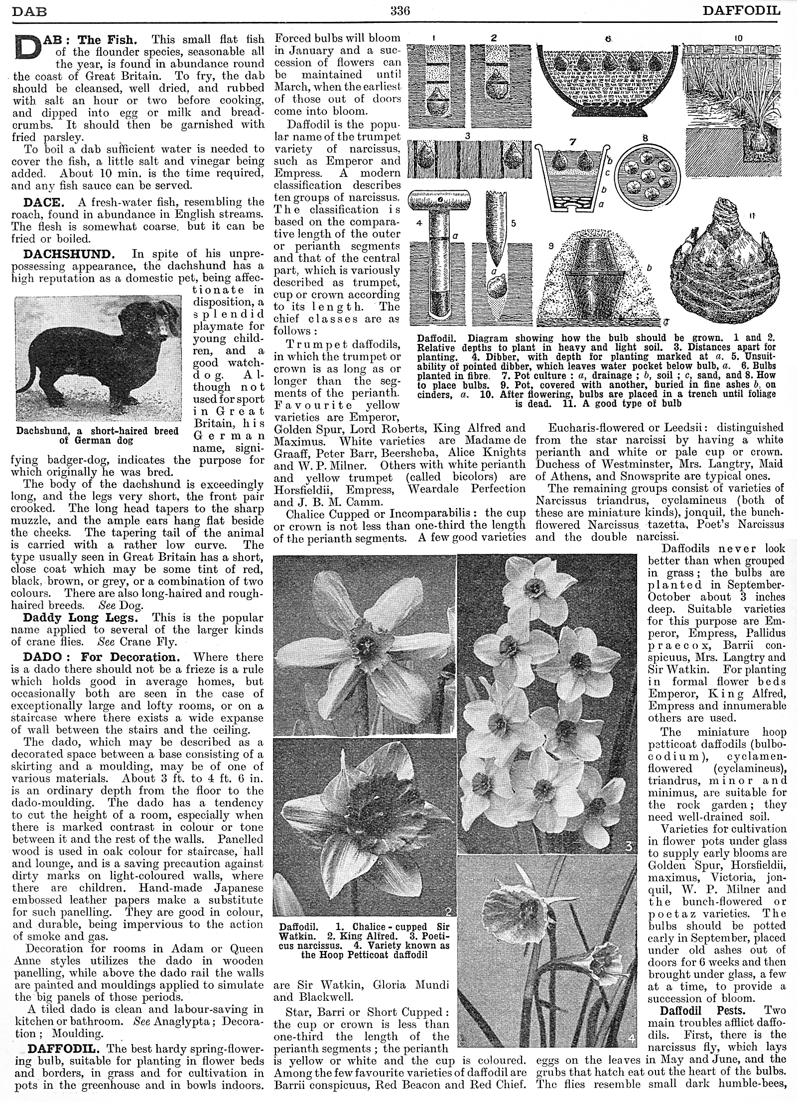 Dab, Dace, Dachshund, Daddy Long Legs, Dado, Daffodil