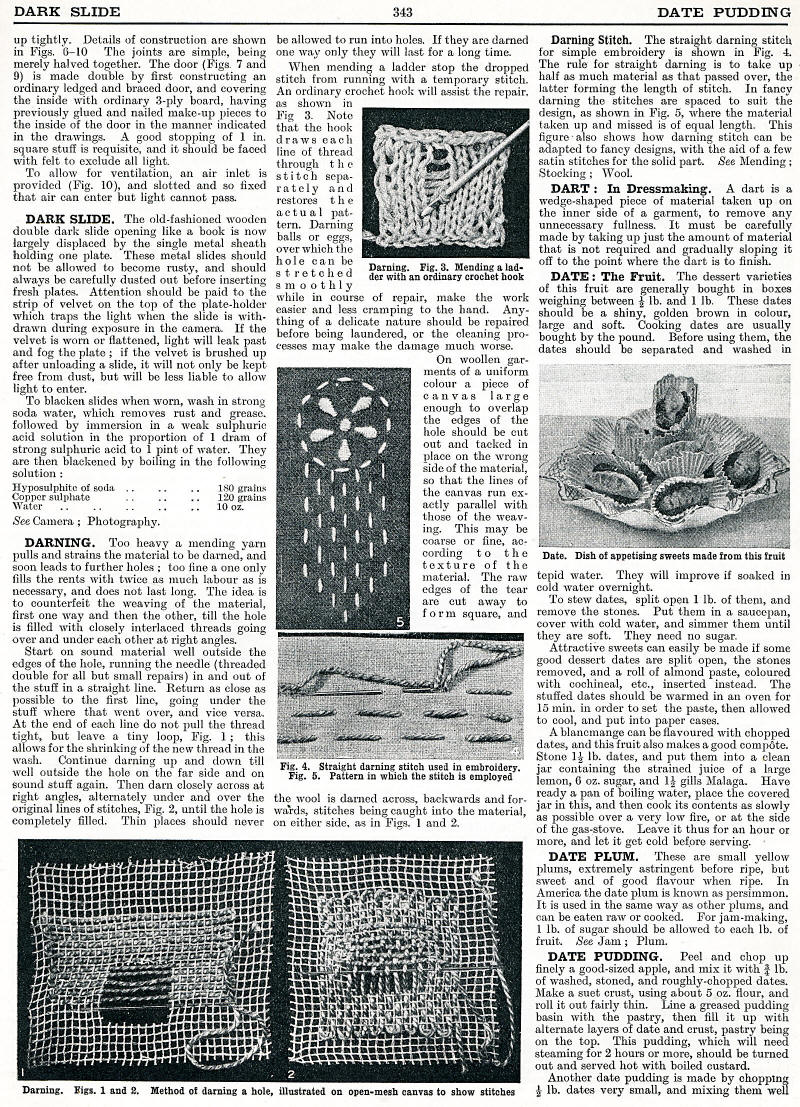 Dark Slide, Darning, Dart in Dressmaking, Date: The Fruit, Date Plum, Date Pudding