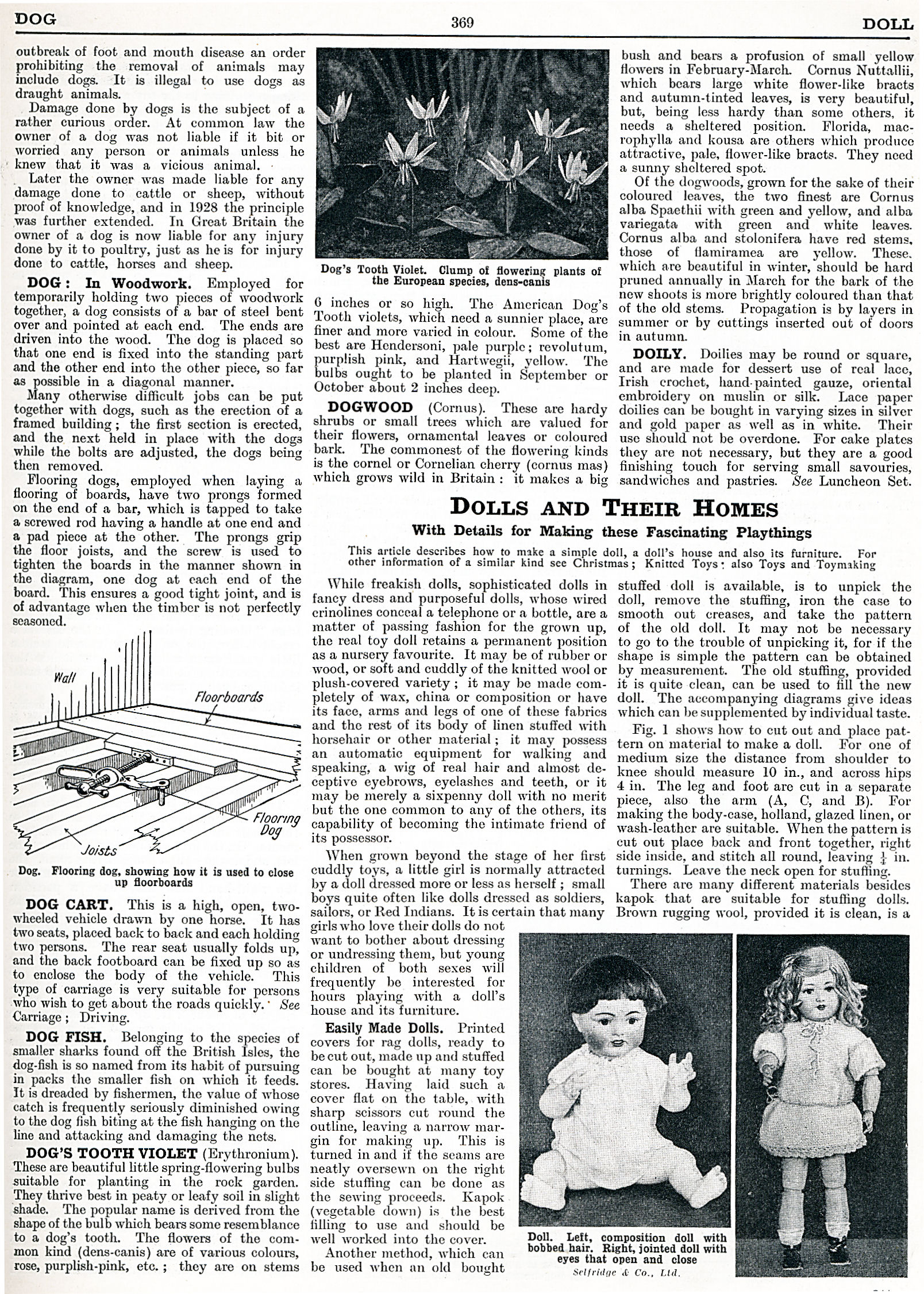 Dogs, Dog Cart, Dog Fish, Dog's Tooth Violet, Dogwood, Doily, Dolls and their Homes