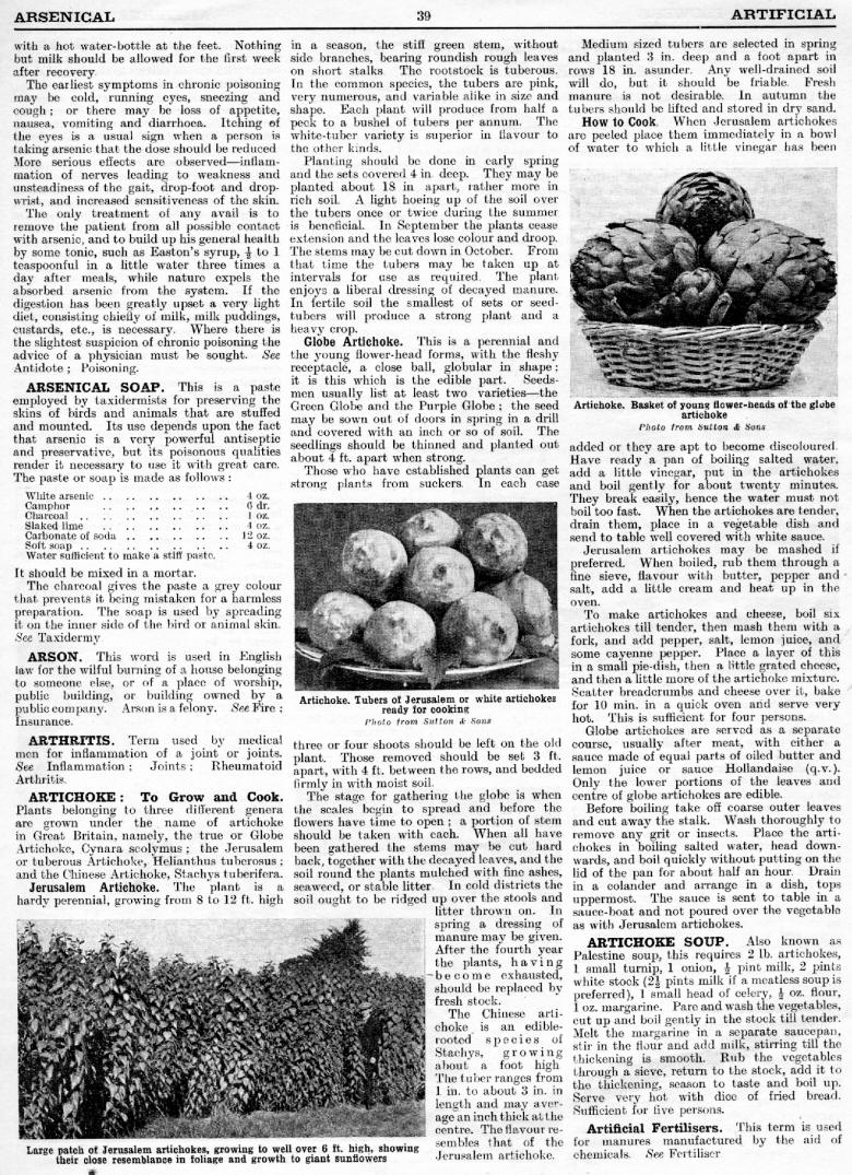 Arsenical, Arsenical Soup, Arson, Arthritis, Artichoke, Artichoke Soup