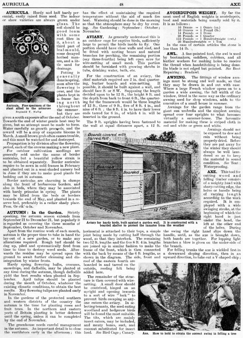 Auricula, Autumn, Aviary, Avoirdupois Weight, Awl, Awning, Axe