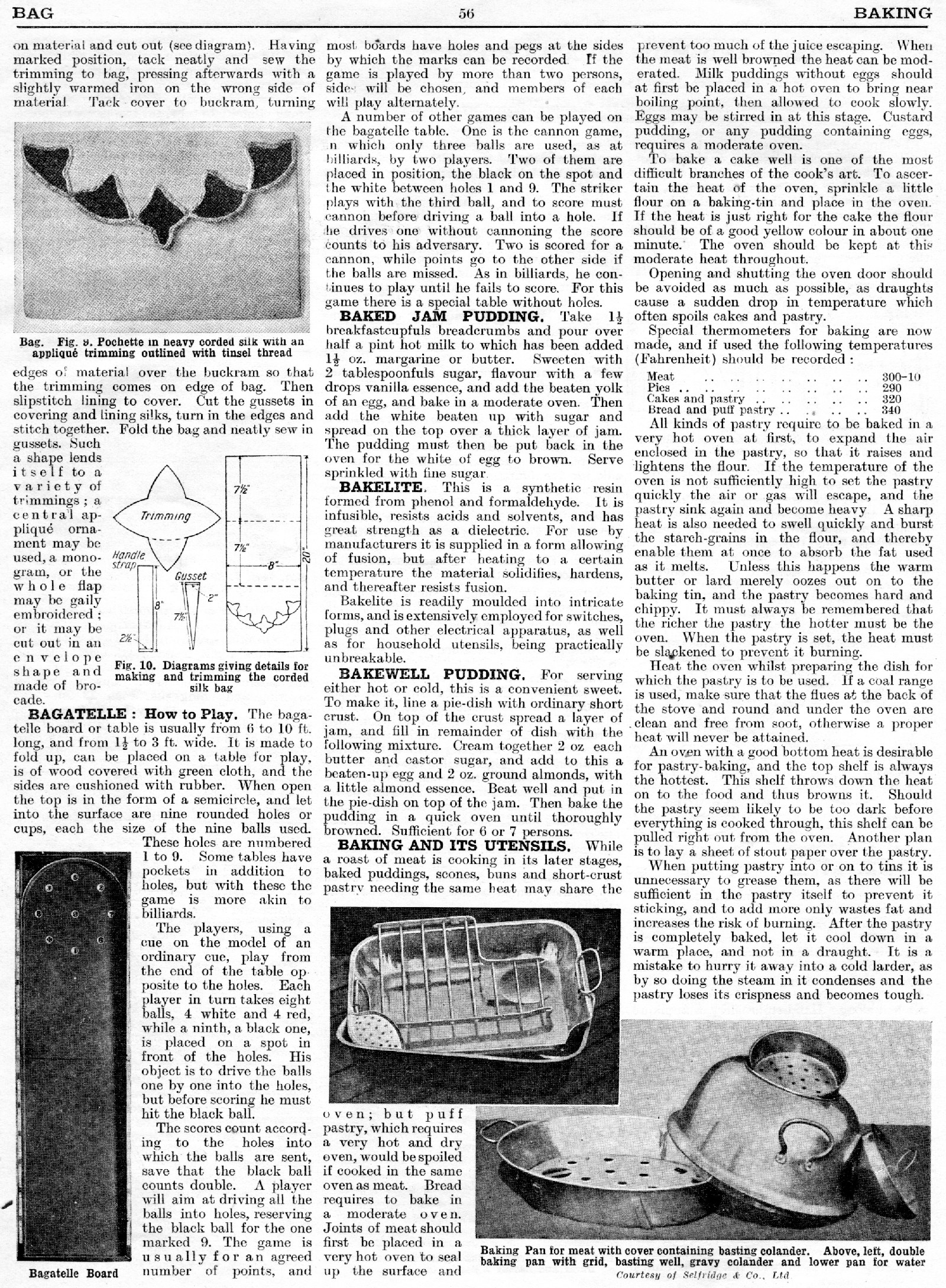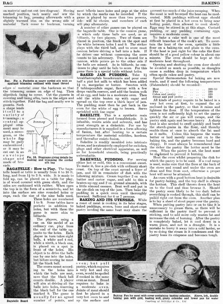 Bag, Bagatelle, Baked Jam  Pudding, Bakelite, Bakewell Pudding, Baking and its Utensils