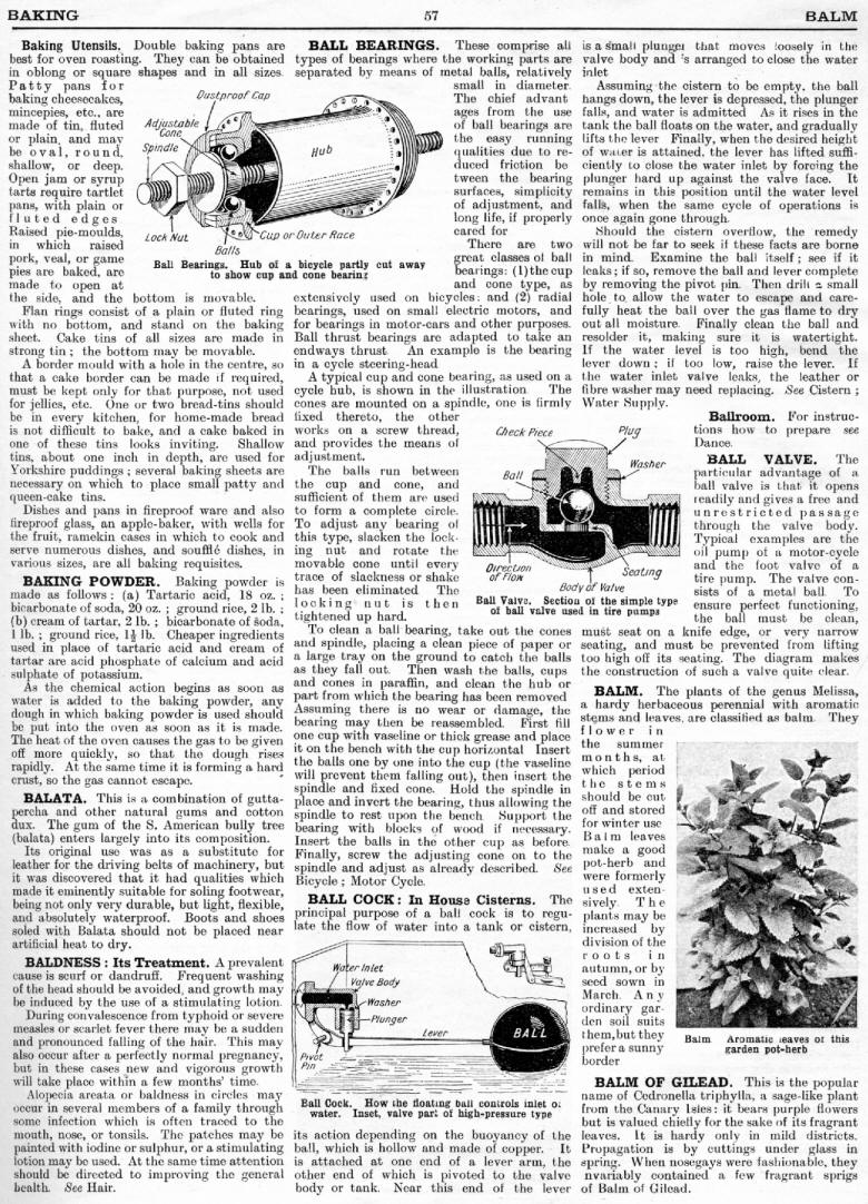 Baking Utensils, Baking Powder, Balata, Baldness, Ball Bearings, Ball Cock, Ballroom, Ball Valve, Balm, Balm of Gilead