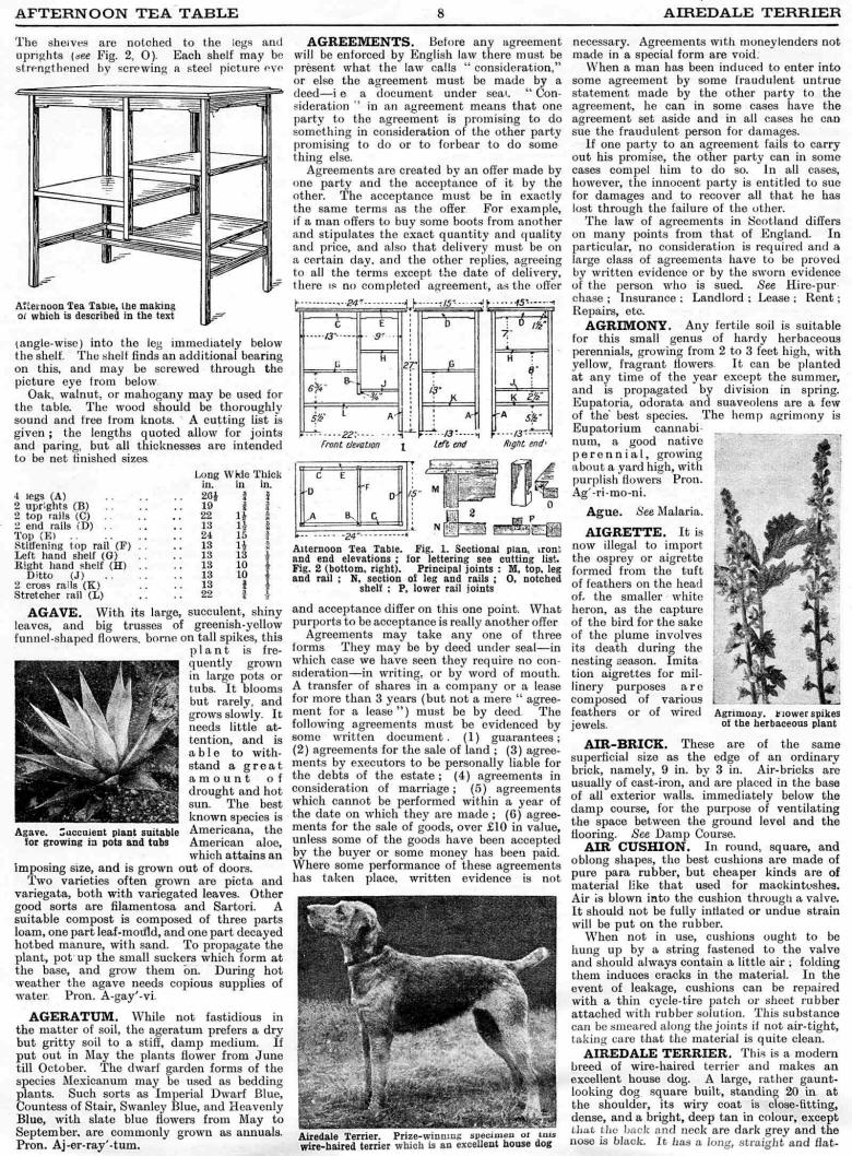 Afternoon Tea Table, Agave, Ageratum, Agreements, Agrimony, Aigrette, Air-Brick, Air Cushion, Airedale Terrier